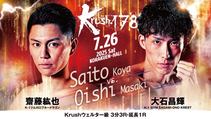 TOP > NEWS > 明日26日(土)は齋藤紘也が出場するKrush178!会場に来られない方は17:15からABEMAでご覧ください!