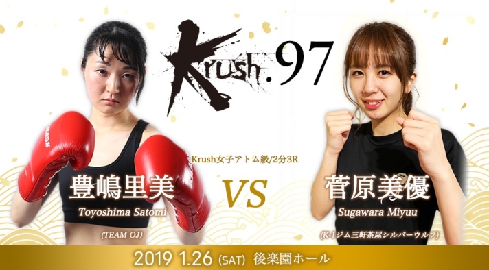 「Krush.97」1.26(土)後楽園 出場選手コメントを公開!!【プレリミナリーファイト/ 豊嶋里美 vs 菅原美優】「冷静に戦うのが今回のテーマ」(豊嶋)vs「楽しむことを心がけて、KANAさんみたいな試合をしたい」(菅原)