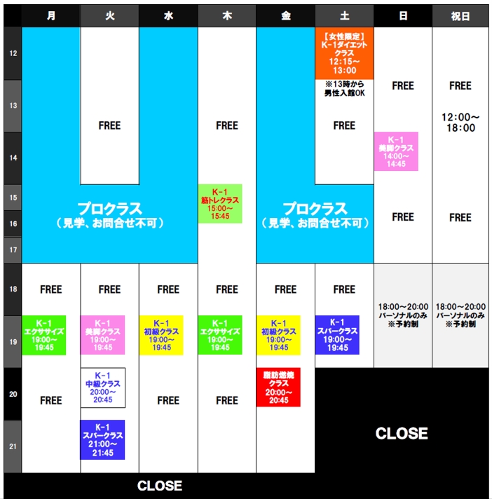 K-1ジム五反田は、「クラス」以外に常に「FREE」をご用意。(クラスがある時間帯も、FREEは並行して実施)