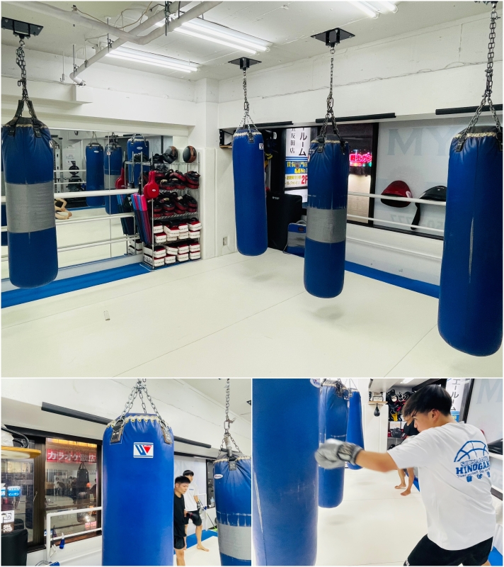 K-1ジム五反田には、サンドバッグが4基あります。
