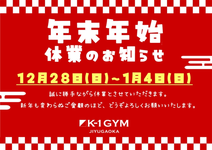 いつもK-1ジム自由が丘をご利用いただき誠にありがとうございます。