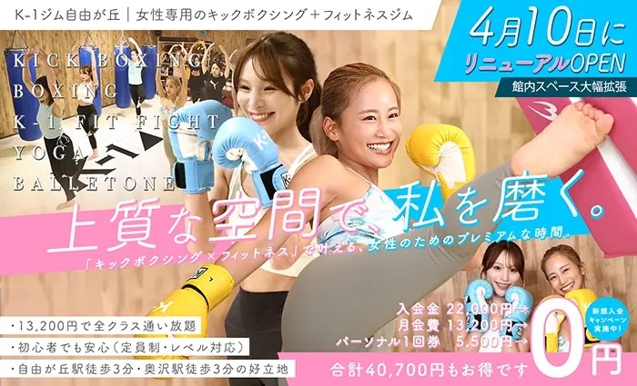4/10、K-1ジム自由が丘がリニューアルいたしました☆