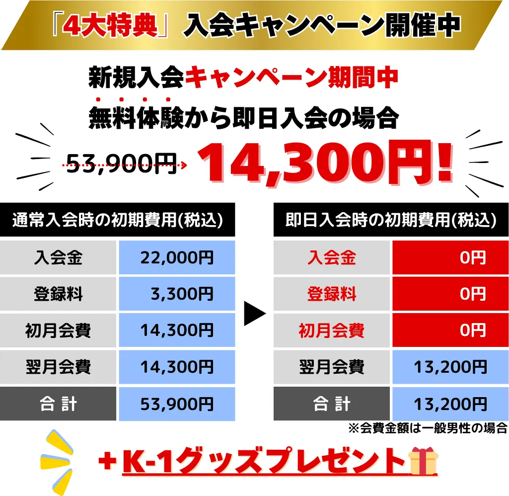 キャンペーン期間中、無料体験から即日入会の場合、27,500円もお得に。