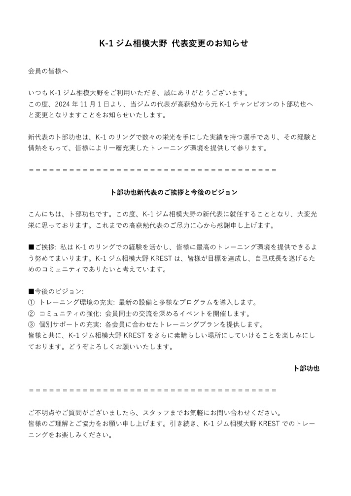 TOP > NEWS > K-1ジム相模大野からのお知らせ