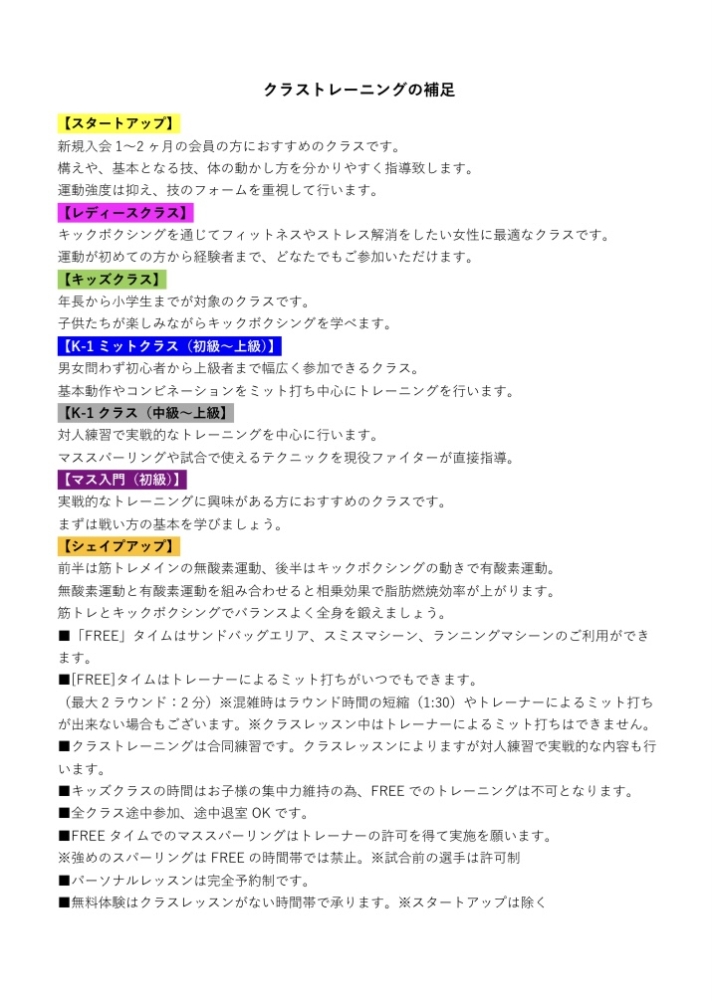 スケジュール・クラス紹介